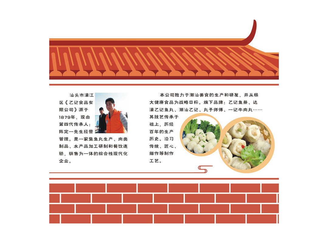 汕頭市濠江區乙記食品有限公司一非遺保護單位,坐落于海產品資源豐富、漁業發達、素有達濠食品“千金之港”、魚米之鄉美譽的汕頭市濠江區。乙記食品創辦于1879年,是一家集水產品及肉類制品生產、食品加工研發、批發銷售為一體的食品供應商,現有廠房占地面積.>2000平方米。公司主打產品涵蓋:魚冊、魚餃、牛肉丸、魚丸、蝦丸、墨斗丸、豬肉丸、豬肚丸等20余種產品。在生產經營方面,業務范圍不斷擴大,旗下多種產品獲“汕頭名小吃”稱號,魚冊制作技藝于2019年被列為市級非物質文化遺產。截至到2022年底,乙記食品旗下已有20家加盟商,旗下品牌“乙記”、“丸子師傅”知名度及美譽不斷攀升,業務覆蓋全國范圍,主要集中在廣東省內。
